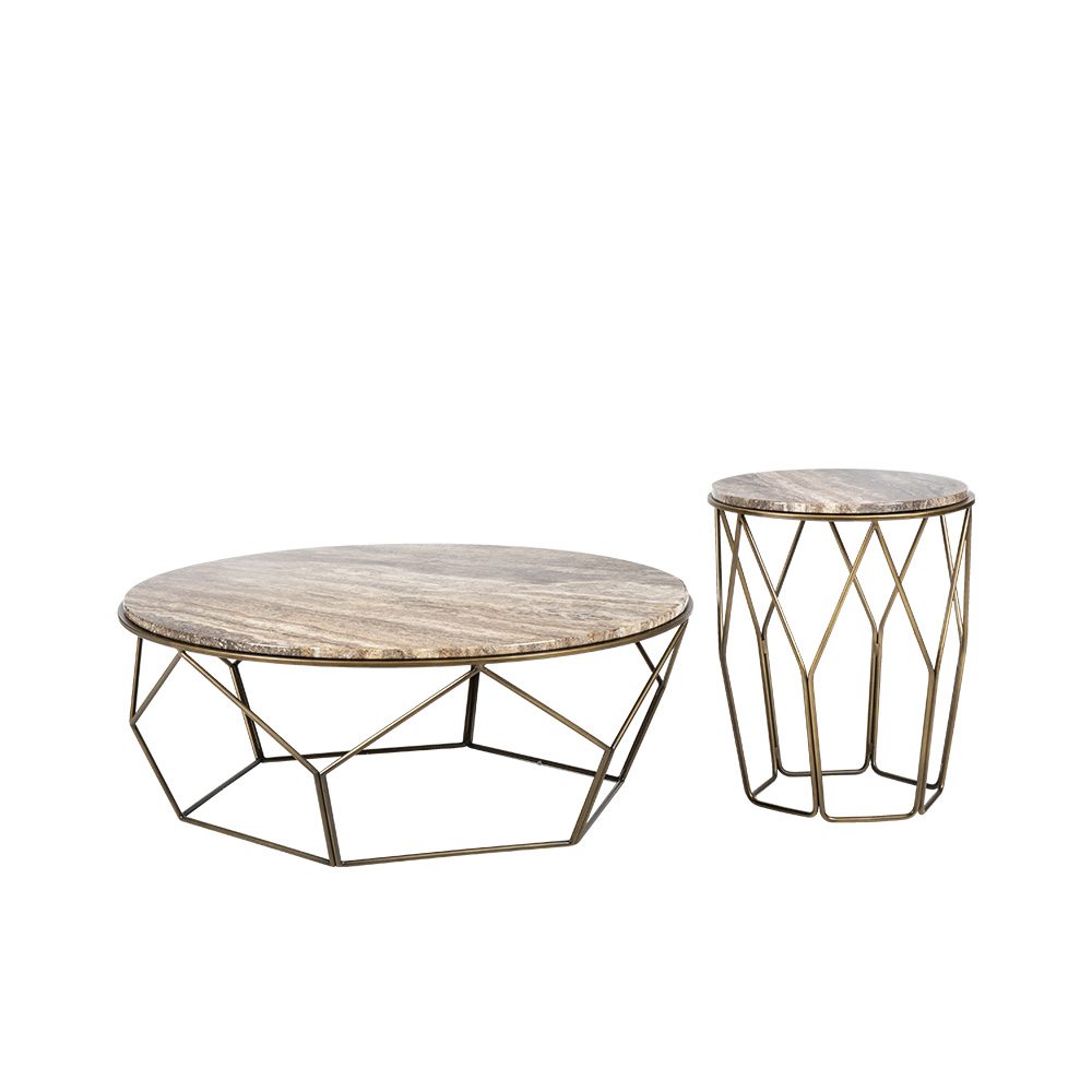 Stealing the limelight with a distinctive geometric base, the fine marble top perfectly complements the distinguished appearance of this coffee table and side table pairing.