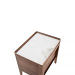 Made with a walnut veneer, this night stand is topped with a jazz white ceramic top for an aesthetically pleasing experience.